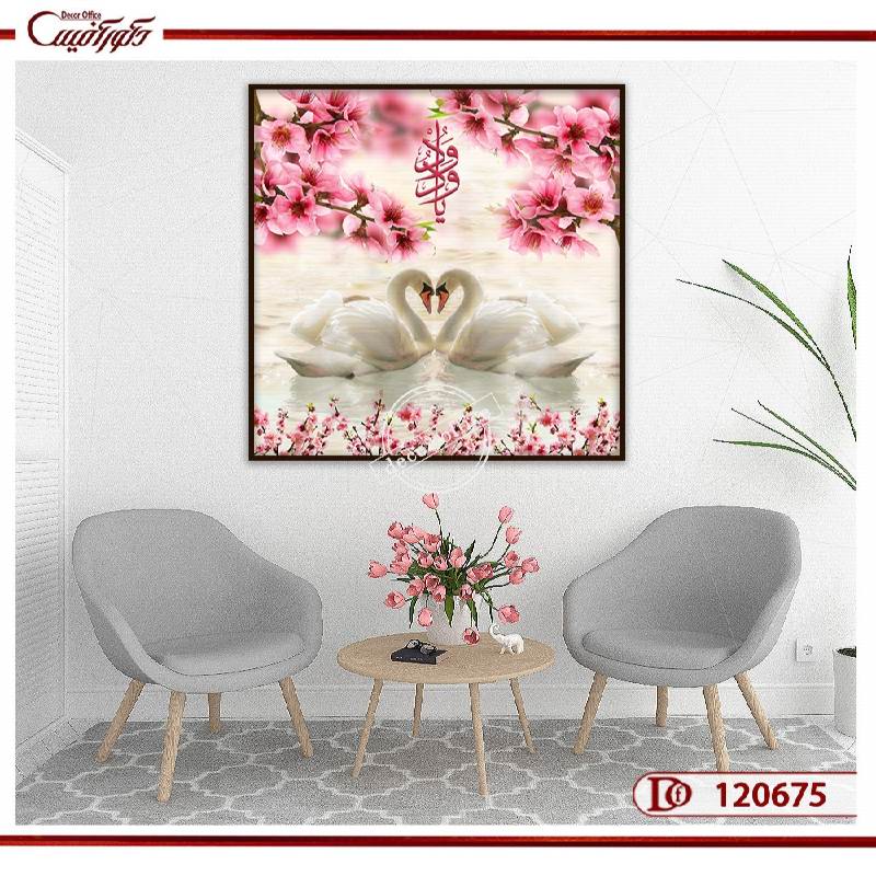این تابلو زیبا با تصویر دو قو در مرکز که سمبل عشق و وفاداری هستند، جلوهای بینظیر به دکوراسیون شما میبخشد. گلهای شکوفه صورتی که در اطراف تصویر قرار گرفتهاند، احساس تازگی، طراوت و زیبایی طبیعت را منتقل میکنند. در بالای تابلو، نمادی معنوی اضافه شده که ارتباطی عمیق با انرژیهای معنوی و هماهنگی دارد.