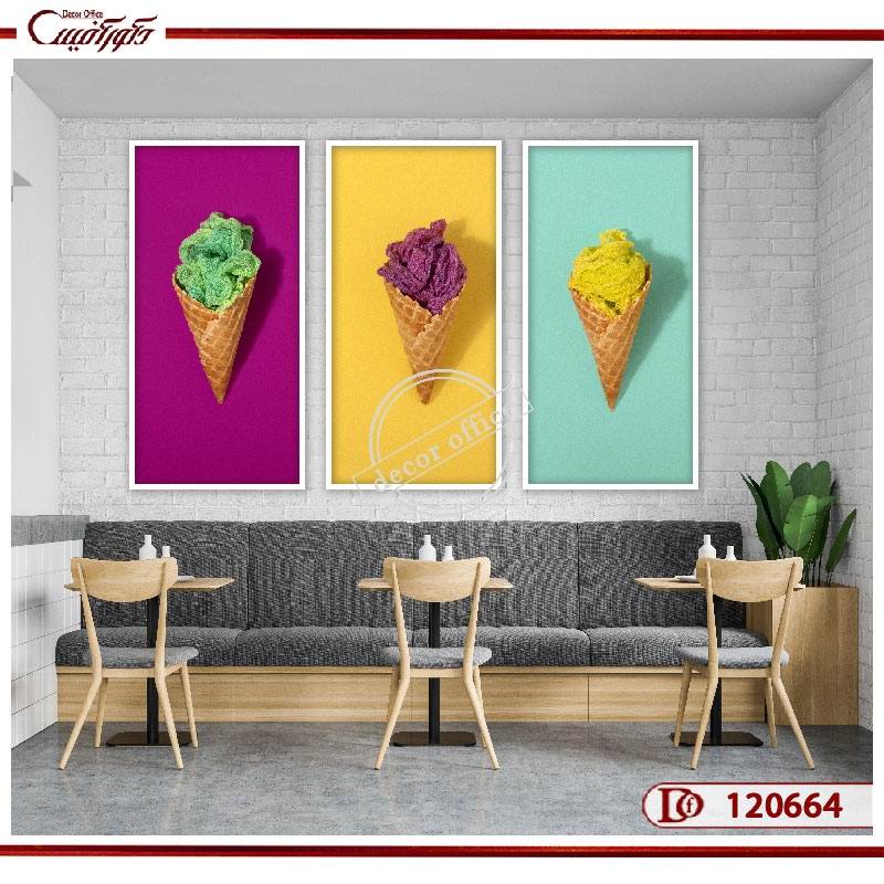 این مجموعه تابلوهای بستنی با طراحی مدرن و رنگهای زنده، جلوهای متفاوت و جذاب به فضاهای مختلف میبخشد. ترکیب سه تصویر مستقل ولی هماهنگ، علاوه بر زیبایی بصری، نوعی حس نشاط، خلاقیت و تنوع را منتقل میکند.