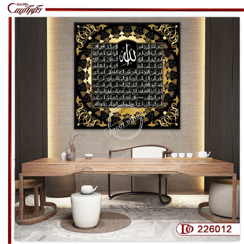 طبق آموزههای اسلامی، ذکر نامهای الهی برکت و انرژی مثبتی را در محیط جاری میسازد. قرار دادن این تابلو دکوری در خانه یا محل کار میتواند تأثیرات مثبتی بر روی افراد داشته باشد و به افزایش حس آرامش و انگیزه در آنها کمک کند.