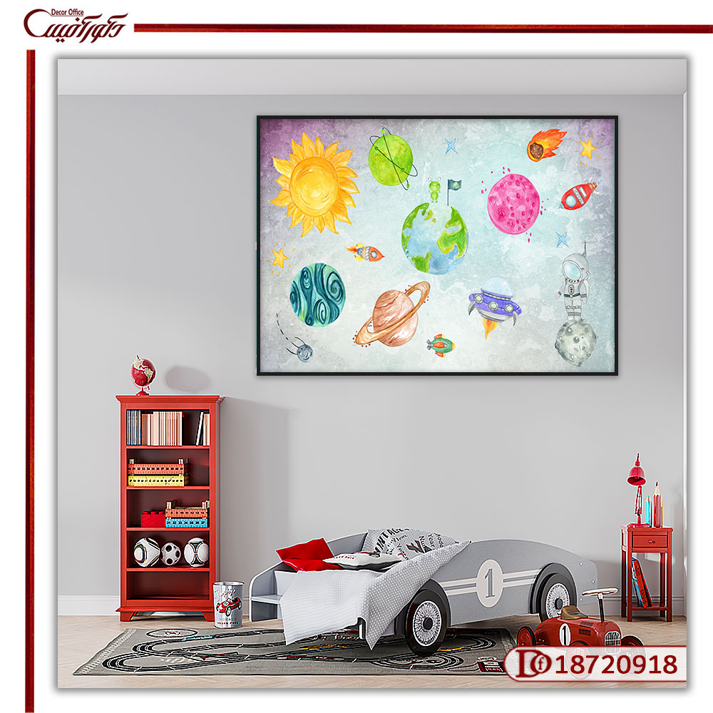 به منظور خرید تابلو بوم کودکان کهکشان می توانید این طرح را در اندازه دلخواه از طریق سایت سفارش دهید. در این صورت نیازی نیست که برای خرید به صورت حضوری مراجعه کنید. پیشنهاد می شود که در هنگام خرید تابلو به نوع طراحی فضا نیز دقت شود. بهتر است با توجه به سایر عناصر و چیدمان، طرح و رنگ تابلو دیواری انتخاب شود. این نوع تابلو می تواند انتخاب مناسبی برای دیوار اتاق کودکان دختر و پسر باشد. شاید برخی تصور کنند که این طرح پسرانه است اما در واقع طرح ها با جنبه آموزشی تنها مختص پسران نیستند و بهتر است در فضای خواب کودکان دختر نیز مورد استفاده قرار بگیرند.