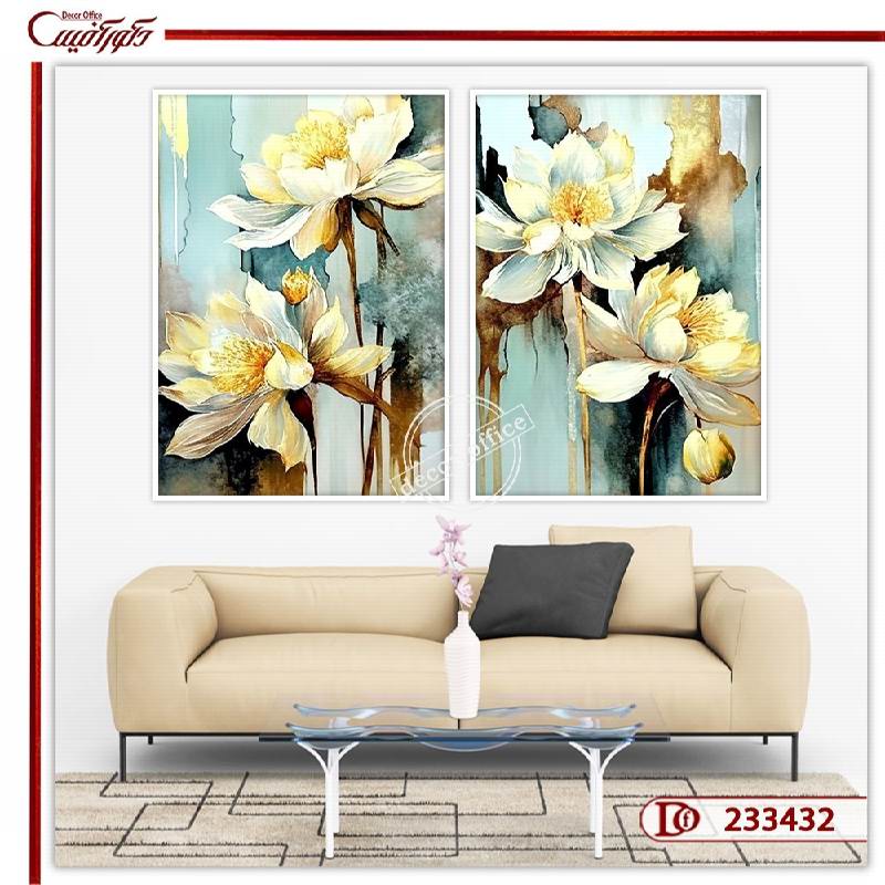 تابلو دو تکه گل نقاشی یک طرح ست است که به صورت مدرن طراحی شده است. گل ها و طبیعت از موضوعاتی هستند که همواره در تزیین دیوار به صورت انواع تابلو دیواری نقش دارند. در طرح پیش رو گل های شکفته بزرگ با رنگ روشن، که در بیشتر طرح های مدرن دیده می شوند، به شکل متنوعی طراحی شده اند. پس زمینه این طرح به رنگ آبی فیروزه ای است و رنگ زرد گل ها روی آن ترکیب جذابی را پدید آورده است. می توانید با توجه به نوع طراحی هر فضا، از تابلو چند تکه برای تزیین دیوار استفاده کنید. بهتر است با توجه به سبک مدرن ساختمان های امروزی، طرح های فانتزی و مدرن بیشتر مورد استفاده قرار بگیرند. امروزه تصاویر مدرن به صورت متنوع تری ارائه می شوند و طراحان از آنها برای تزیین دیوار استفاده می کنند.