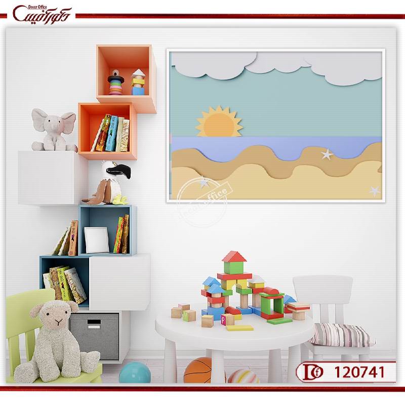 ترکیب رنگ‌های ملایم و طبیعی این تابلو باعث می‌شه فضای اتاق کودک آروم، دل‌نشین و منظم به نظر برسه. بدون شلوغی‌های تصویری، فقط عناصر ساده‌ای که بچه‌ها باهاشون ارتباط می‌گیرن: دریا، ساحل، آفتاب و آسمون.
