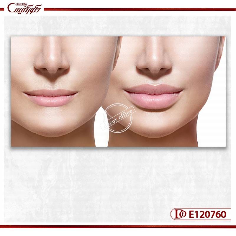 این اثر هنری، مقایسه‌ای دقیق بین حالت طبیعی لب و لب پس از فیلر لب را به نمایش می‌گذارد. به همین دلیل، برای مطب‌های زیبایی و سالن‌های تخصصی که خدمات ژل لب یا بوتاکس لب ارائه می‌دهند، گزینه‌ای بسیار کاربردی محسوب می‌شود. کیفیت بالای چاپ و طراحی آن باعث می‌شود که حتی در نگاه اول، پیام حرفه‌ای و آموزشی به مخاطب منتقل شود. تابلو دکوراتیو کلینیک زیبایی با چنین موضوعی می‌تواند حس اعتماد و اطمینان مشتریان شما را تقویت کند.