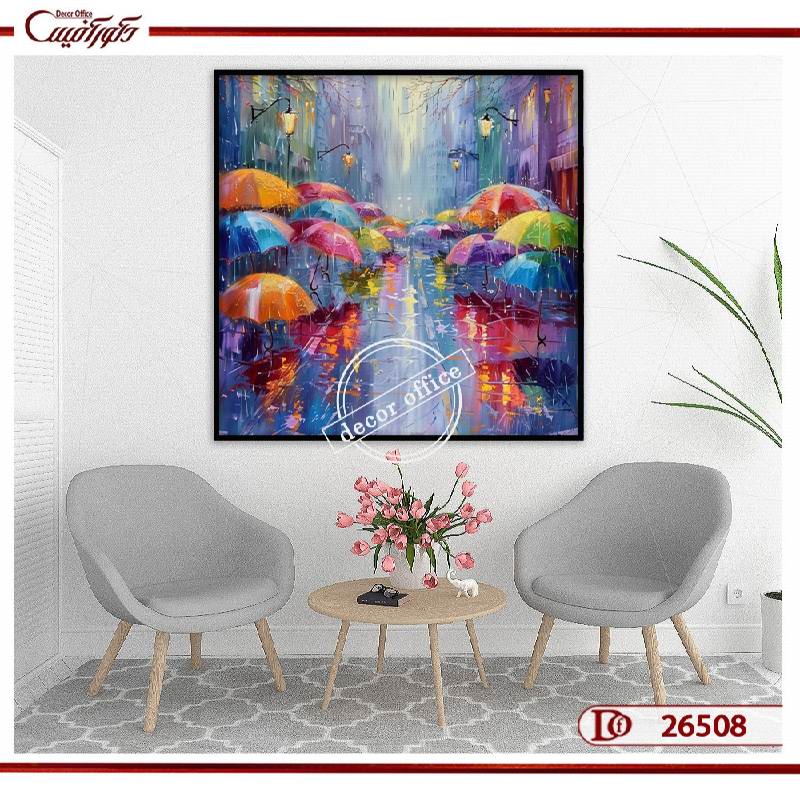 هنر، زبان بیکلامی است که احساسات را به زیباترین شکل ممکن بیان میکند. این تابلو دکوراتیو با نمایش خیابانی بارانی، پر از چترهای رنگارنگ و انعکاسهای درخشان روی سنگفرش خیس، دعوتی است به دنیایی که در آن رنگها در میان قطرات باران میرقصند و زندگی جاری است. این اثر هنری، تابلویی چشمگیر و پرجنبوجوش است که ترکیبی از رئالیسم و اکسپرسیونیسم را با هم پیوند میدهد و حس سرزندگی و شور را به بیننده منتقل میکند.