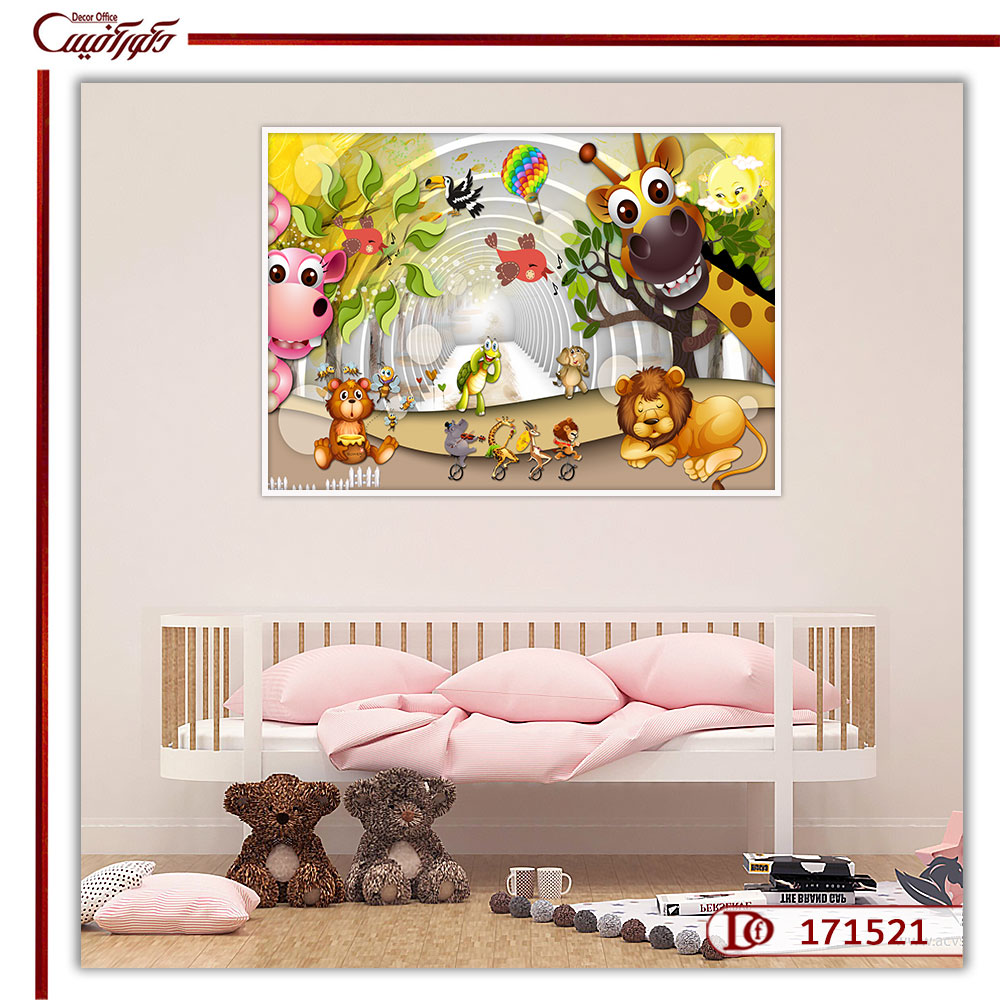 تابلو دیواری کودک فانتزی یک طرح جذاب است که می توان از آن برای اتاق خواب پسرانه و دخترانه، استفاده کرد. در این تابلو از طرح حیوانات جنگل مانند زرافه، شیر و ... استفاده شده است. طراحی حیوانات به صورت فانتزی صورت گرفته است تا با علائق کودکان هماهنگ باشد. معمولا کودکان در سنین پایین تمایل به تصاویر کارتونی و فانتزی دارند. می توان از شخصیت های کارتونی مورد علاقه کودک برای دیزاین اتاق خواب وی نیز استفاده کرد. امروزه طرح های متنوعی توسط طراحان ارائه می شوند که متناسب با سن و جنسیت کودک طراحی می شوند.