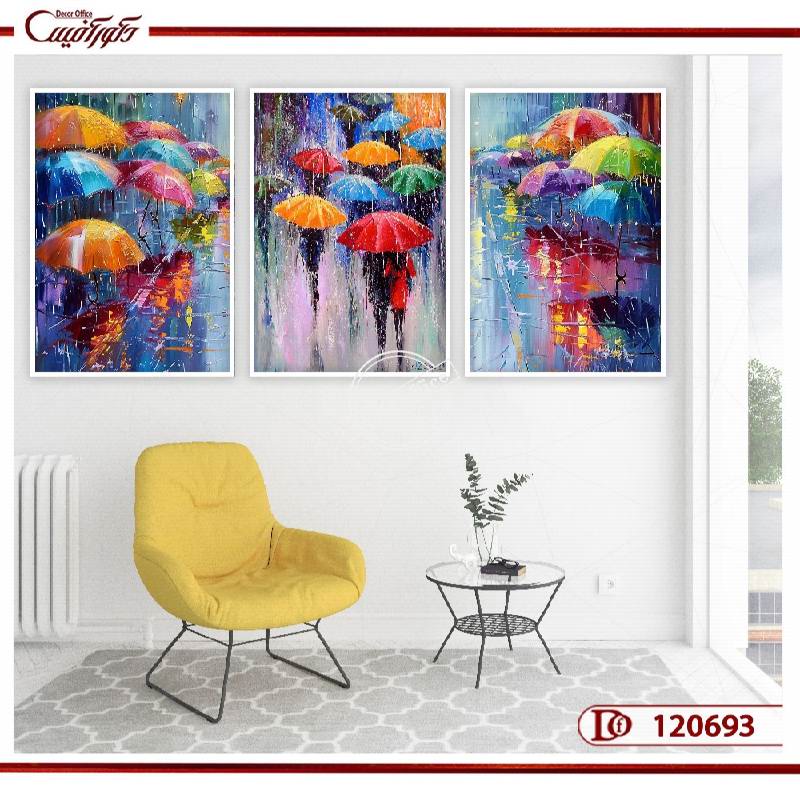 تابلو سهتکه چترهای رنگارنگ میتواند به هر فضایی زندگی ببخشد و آن را از یکنواختی خارج کند: