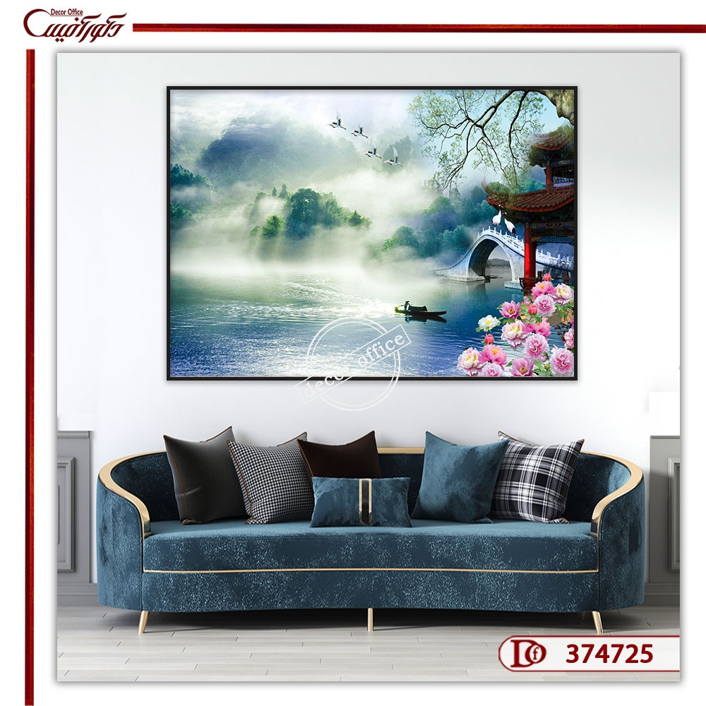 تابلو منظره دریاچه یک طرح بسیار زیبا و رویایی است که انتخاب مناسبی برای پوشش دیوار فضاهای مدرن است. همانطور که در تصویر مشاهده می کنید این طرح روی دیوار پشت مبلمان در مرکز قرار داده شده است. در نتیجه در فضاهایی که دارای مبلمان هستند، می توان از طرح پیش رو استفاده کرد. البته در یک فضای مسکونی بخش های دیگری نیز مانند فضای پشت میز ناهارخوری نیز وجود دارند. البته گاهی یک دیوار عمودی با عرض کم نیز می تواند مکان مناسبی برای نصب تابلو دیواری باشد. طرح هایی مانند مناظر طبیعی، طرفداران زیادی دارند. زیرا این نوع موضوعات با هر کاربری هماهنگ هستند. می توانید به منظور طراحی فضای مورد نظر از انواع تابلو منظره استفاده کنید.