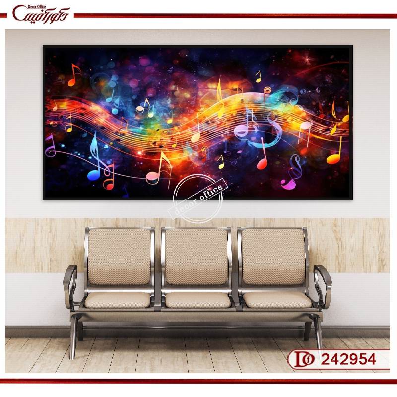 🔹 سبک مدرن و دیجیتال: این تابلو در سبک هنر دیجیتال و انتزاعی مدرن قرار دارد که امروزه در دکوراسیون داخلی بسیار پرطرفدار است. ترکیب رنگهای اشباعشده و المانهای موسیقایی به شیوهای مدرن، حس معاصر و امروزی به این اثر میبخشد.