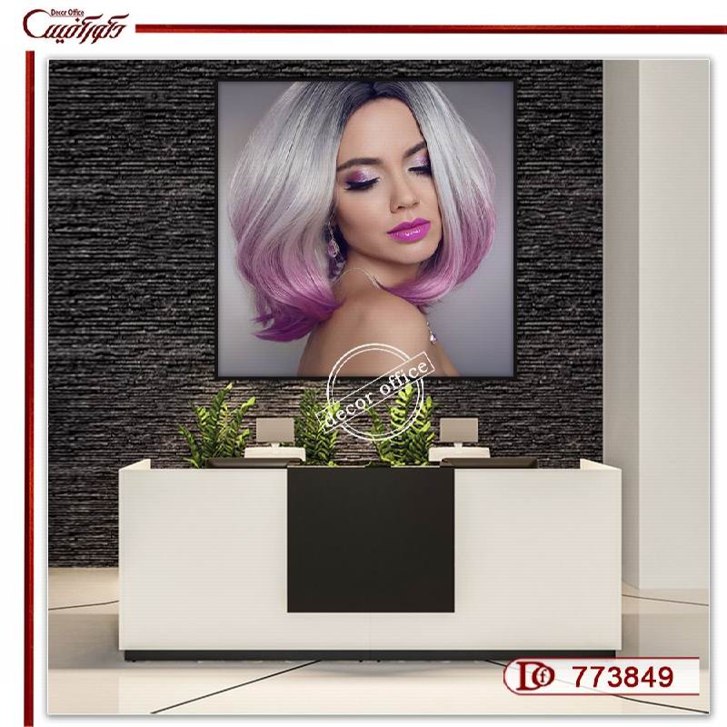 تابلو چهره زیبایی و آرایشگاه 773849 یک طرح کاربردی برای تزیین دیوار است. این طرح به گونه ای طراحی شده است که برای فضایی مانند آرایشگاه زنانه انتخاب مناسبی است. تابلو دیواری پیش رو روی بوم مربع ارائه شده است. باید سعی شود که تصویر چاپی متناسب با نوع فعالیت و خدمات آرایشگاه انتخاب شود. در این صورت با نگاه اول مخاطب می تواند به این موضوع پی ببرد که طرح پیش رو نشان دهنده نوع خدمات مجموعه است. اغلب برای آرایشگاه زنانه طرح های متنوعی طراحی می شود که می توان از آن ها با توجه به نوع طراحی فضای مورد نظر، استفاده کرد. در تصویر برای یک دیوار تیره از طرح پیش رو استفاده شده است و همانطور که مشاهده می کنید تضاد مناسبی ایجاد شده است.