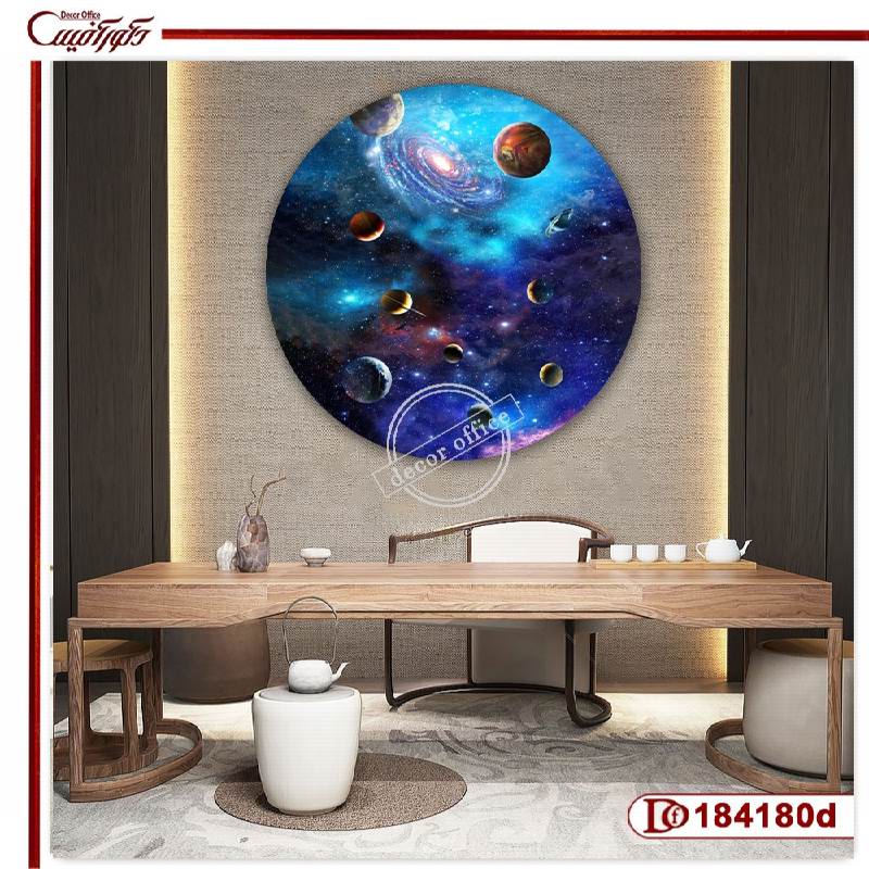 تابلو گرد کهکشان از تصاویر جذاب است که می توانید برای دیزاین محل کار و خانه از آن استفاده کنید. بومی که برای کهکشان انتخاب می شود، باید دایره شکل باشد تا زیبایی بیشتری داشته باشد. به همین دلیل در مواردی که از کره زمین یا کهکشان استفاده می شود، بوم اغلب گرد است. در این طرح می توانید سیارات منظومه شمسی را مشاهده کنید که در کنار هم در کهکشان نمایش داده شده اند. رنگ کلی طرح آبی است و به همین دلیل می تواند برای فضاهایی با رنگ خاص کاربرد داشته باشد. در فنگشویی از کهکشان برای رسیدن به خواسته ها و موفقیت استفاده می شود.