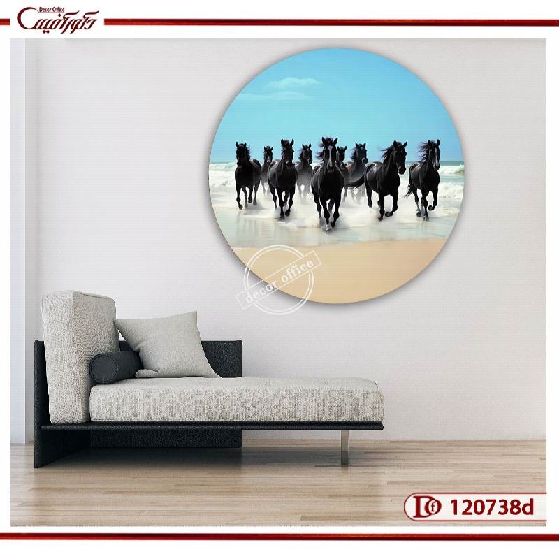 تابلو گله اسب مشکی ۹ تایی اثری منحصربه‌فرد و چشم‌گیر است که تلفیقی از واقع‌گرایی، قدرت و زیبایی طبیعت را در قالب یک تابلو دایره‌ای بوم کنواس به تصویر می‌کشد. در این اثر، نه اسب سیاه در ساحل آبی در حال دویدن‌اند؛ تصویری پرانرژی و الهام‌بخش که حس زندگی، حرکت و اراده را منتقل می‌کند. این تابلو علاوه بر جلوه بصری زیبا، بر اساس اصول فنگ‌شویی نیز نمادی از رشد، پیشرفت و موفقیت در کسب‌وکار محسوب می‌شود.