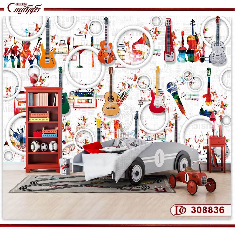 پوستر دیواری طرح گیتار برای اتاق کودکان می تواند انتخاب مناسبی باشد. طراحان سعی می کنند که اتاق کودکان را نیز با انواع کاغذ دیواری سه بعدی تزیین کنند. طرح های متنوعی برای دیزاین اتاق کودک انتخاب می شوند. کاغذ دیواری سه بعدی پیش رو را می توانید برای دیزاین اتاق کودکان نیز استفاده کرد. آلات موسیقی مانند گیتار در این طرح مورد استفاده قرار گرفته اند. تنوع رنگ در این طرح موجب می شود که فضایی شاد و سرزنده برای کودک طراحی شود. اتاق خواب کودکان را می توانید با طرح هایی از این قبیل دیزاین کنید.