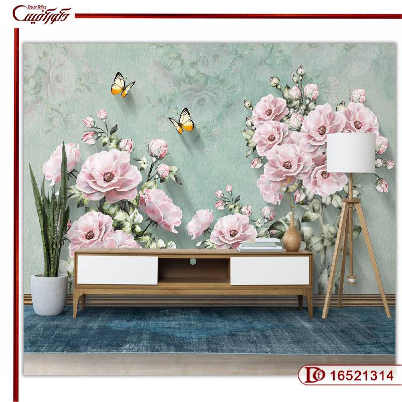 پوستر دیواری نقاشی گل و پروانه یک طرح دلنشین و زیبا دارد و با رنگ های ملایم ارائه شده است. در نتیجه این کاغذ دیواری سه بعدی انتخاب بسیار مناسبی برای بخش های داخلی یک فضا، با رنگ و چیدمان متنوع است. زیرا طرح های پوستر دیواری سه بعدی که با رنگ ملایم ارائه می شوند، با هر نوع چیدمانی هماهنگ می شوند. البته طراحان گاهی یک طرح را با رنگ متنوع نیز ارائه می دهند که مخاطب بتواند حق انتخاب بیشتری برای خرید آن داشته باشد. گل های صورتی در کنار پروانه های درحال پرواز، منظره زیبایی را پدید آورد است. طرح به صورت نقاشی شده روی این پوشش تزیینی چاپ شده است و به همین دلیل حس و حال هنری دارد. همانطور که در تصویر مشاهده می کنید، پوستر دیواری به صورت کامل دیوار را پوشش داده است.