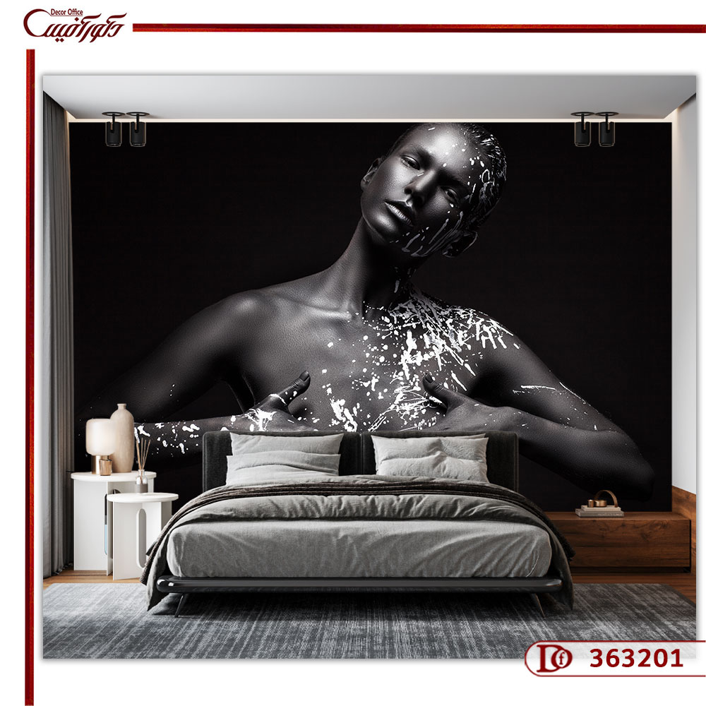 پوستر دیواری چهره سیاه پوست یکی از طرح های جذاب و پرفروش سایت دکورآفیس است که به صورت های متنوعی ارائه می شود. در طراحی مدرن اغلب از طراحی چهره یا همان پرتره استفاده می شود. در نتیجه در این کاغذ دیواری سه بعدی نیز موضوع اصلی همان طرح صورت یا پرتره است. همانطور که مشاهده می کنید فضای پس زمینه این پوستر دیواری سه بعدی تیره است. همین امر موجب شده است که طراح تمایل داشته باشد که این طرح را در فضای خواب مورد استفاده قرار دهد. انواع پوستر دیواری که در اتاق خواب مورد استفاده قرار می گیرند نباید موجب برهم خورد آرامش فرد شود. در نتیجه طراحان نیز تمایل دارند که از طرح هایی استفاده کنند که بیشتر با کاربری این فضا هماهنگ هستند. از این رو طرح پیش رو انتخاب مناسبی برای نصب در این فضا است.