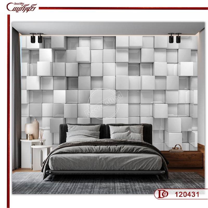 کاغذ دیواری سه بعدی هندسی مکعبی یکی از طرح های مناسب برای اتاق خواب است. همانطور که می دانید امروزه برای پوشش دیوار فضاهایی مانند دیوار پشت تخت خواب از انواع دیوارپوش مانند پوستر دیواری استفاده می شود. طرح این پوشش های تزیینی بسیار متنوع است و به همین دلیل مخاطب و مشتری می تواند با توجه به نوع طراحی هر فضا، طرح دلخواه را روی دیوار نصب کند. در این طرح به دلیل استفاده از رنگ خاکستری در دیزاین فضای اتاق خواب، رنگ طرح با شکل هندسی مکعبی، سیاه و سفید در نظر گرفته شده است. این نوع تصاویر که دارای اشکال و احجام هندسی هستند، هماهنگی بسیار زیادی با چیدمان مدرن امروزی دارند. به همین دلیل طراحان نیز اغلب برای چیدمان مدرن، از الگوهای هندسی انواع پوستر دیواری سه بعدی استفاده می کنند.